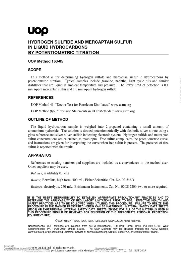 Nonconfidential UOP Methods are available from ASTM International, 100 Barr Harbor Drive, PO Box C700, West