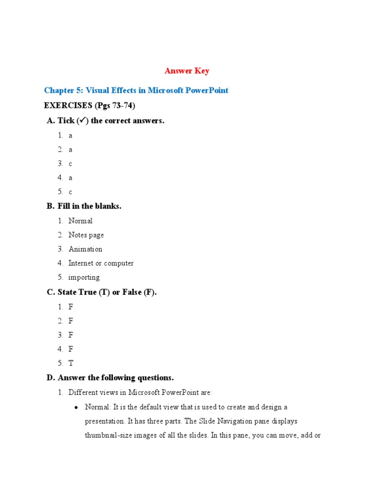 1. Different views in Microsoft PowerPoint are: