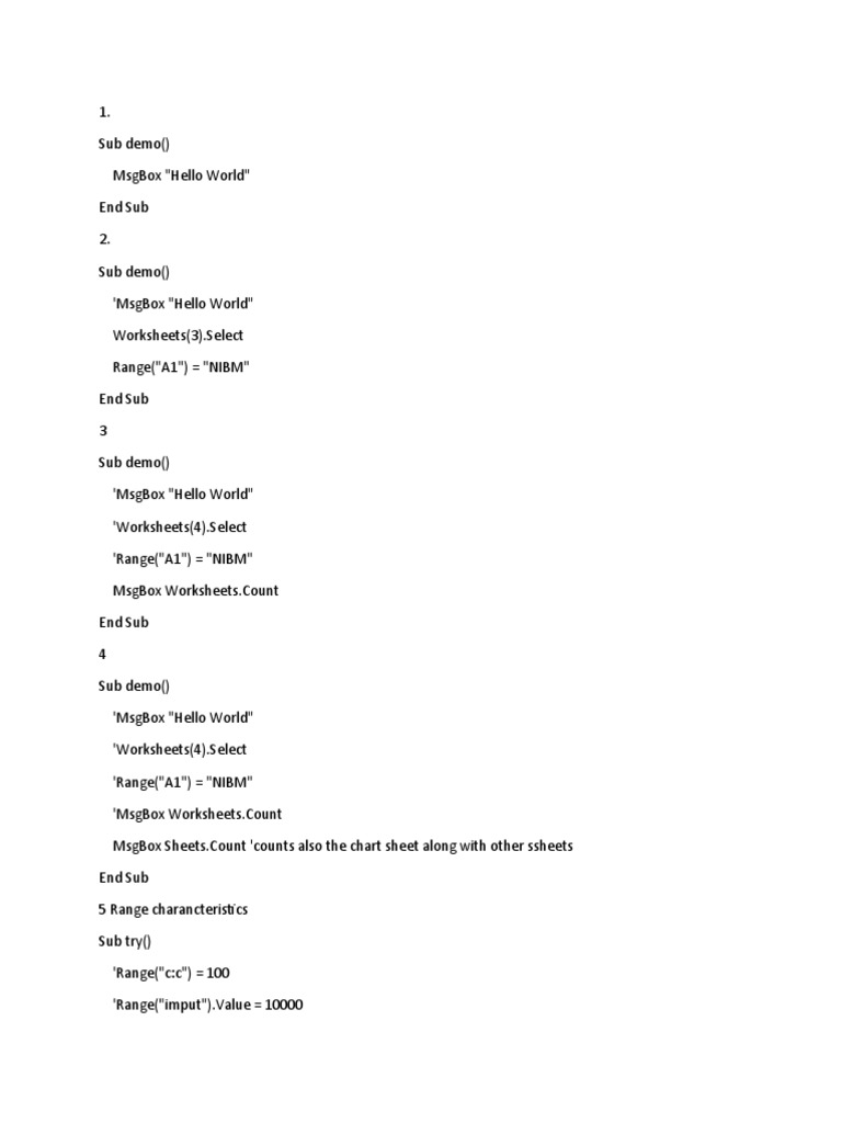 'MsgBox "Hello World"