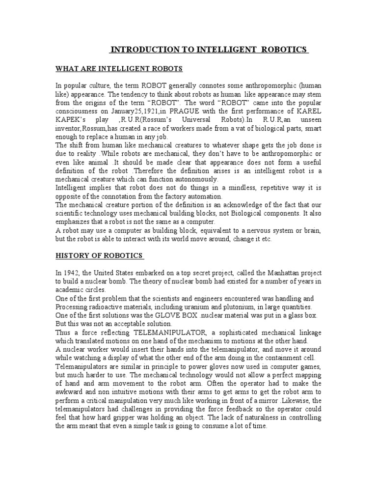definition of the robot .Therefore the definition arises is an intelligent robot is a