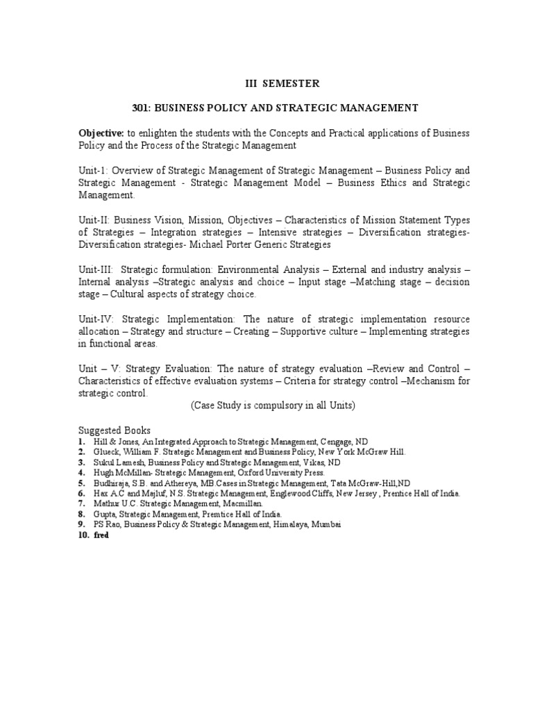 301: BUSINESS POLICY AND STRATEGIC MANAGEMENT