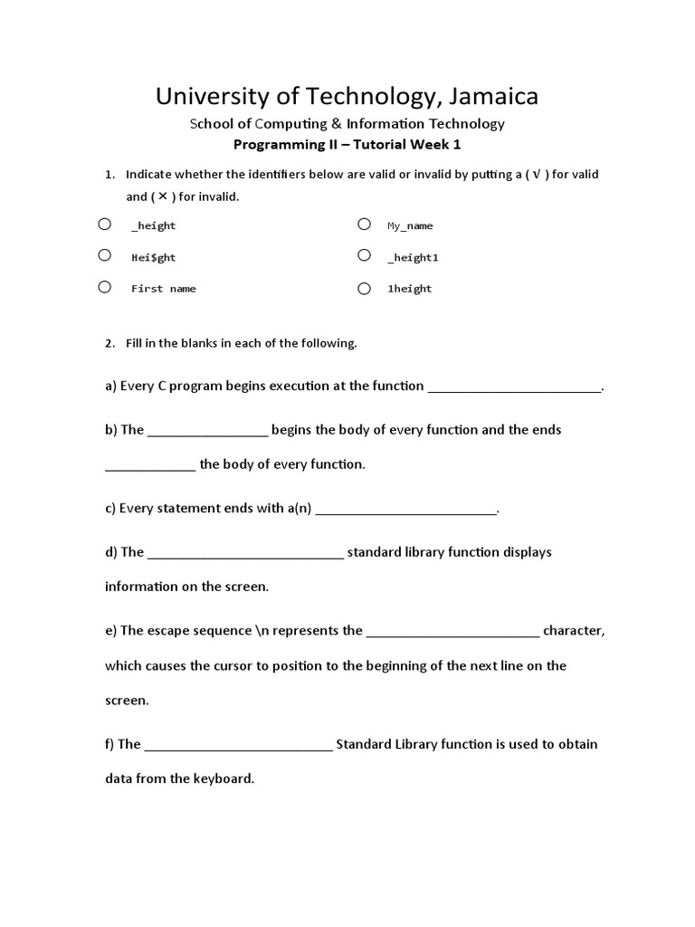 1. Indicate whether the identifiers below are valid or invalid by putting a ( √ ) for valid