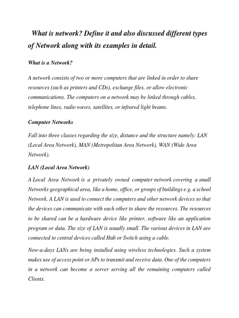 program or data. The size of LAN is usually small. The various devices in LAN are