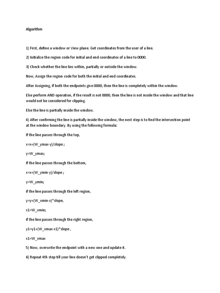 1) First, define a window or View plane. Get coordinates from the user of a line.
