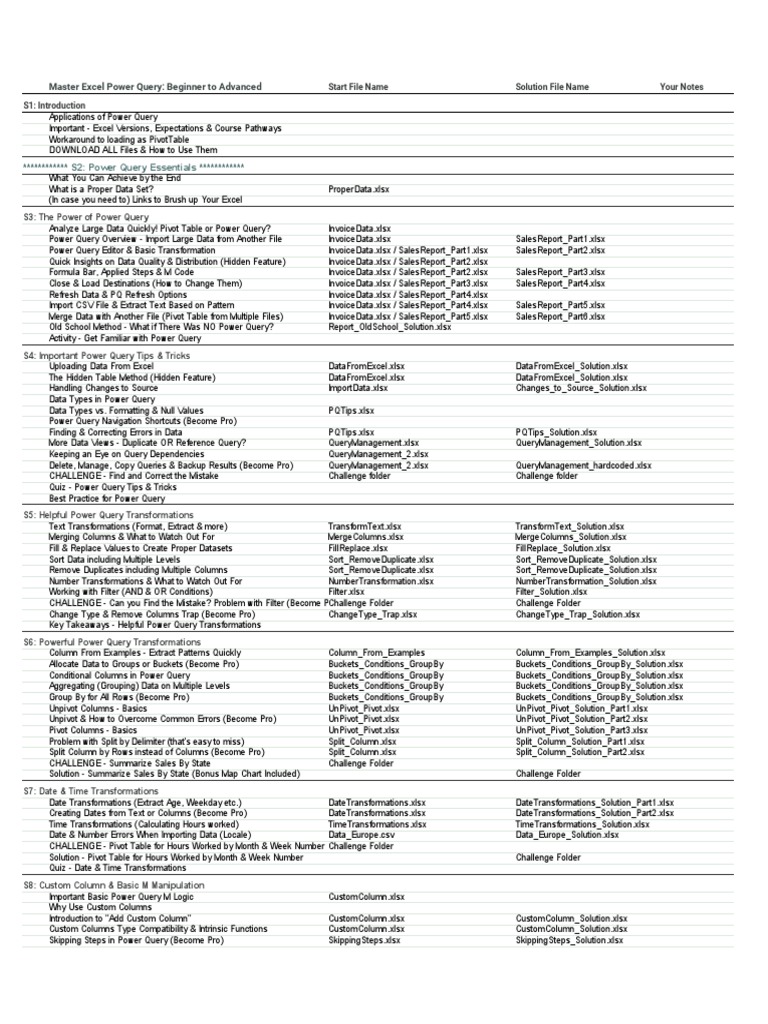 Master Excel Power Query: Beginner to Advanced Start File Name Solution File Name Your Notes