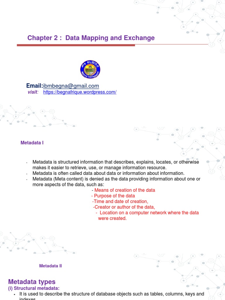 Chapter 2: Data Mapping and Exchange: Visit