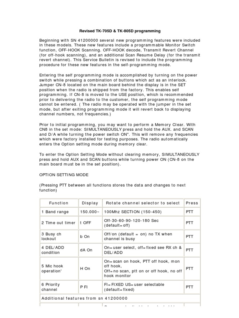 TK-705D AND TK-805D FREQUENCY, AUXILIARY & SCAN Programming