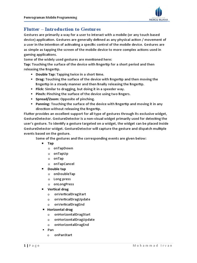 Flutter provides an excellent support for all type of gestures through its exclusive widget,