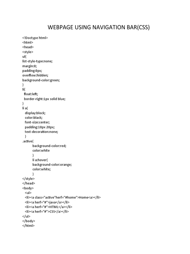 WEBPAGE USING NAVIGATION BAR(CSS)