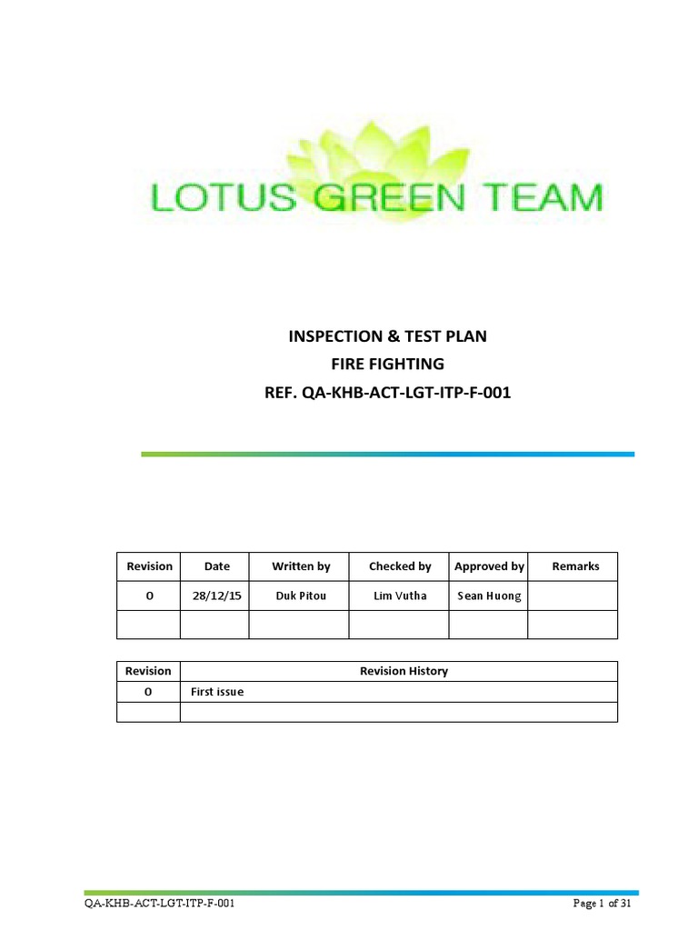 Prepared by Lotus Green Team ITP No. QA-KHB-ACT-LGT-ITP-FF--001