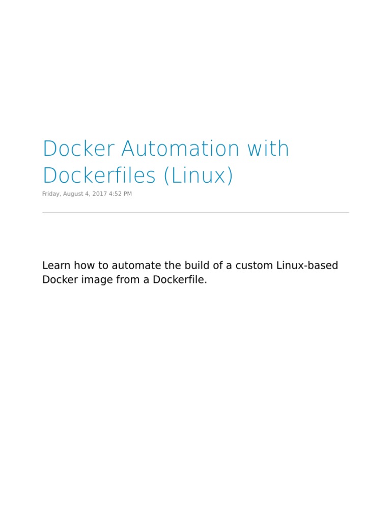 This workshop will show you how to automate the building and configuring of a Linux-based Docker