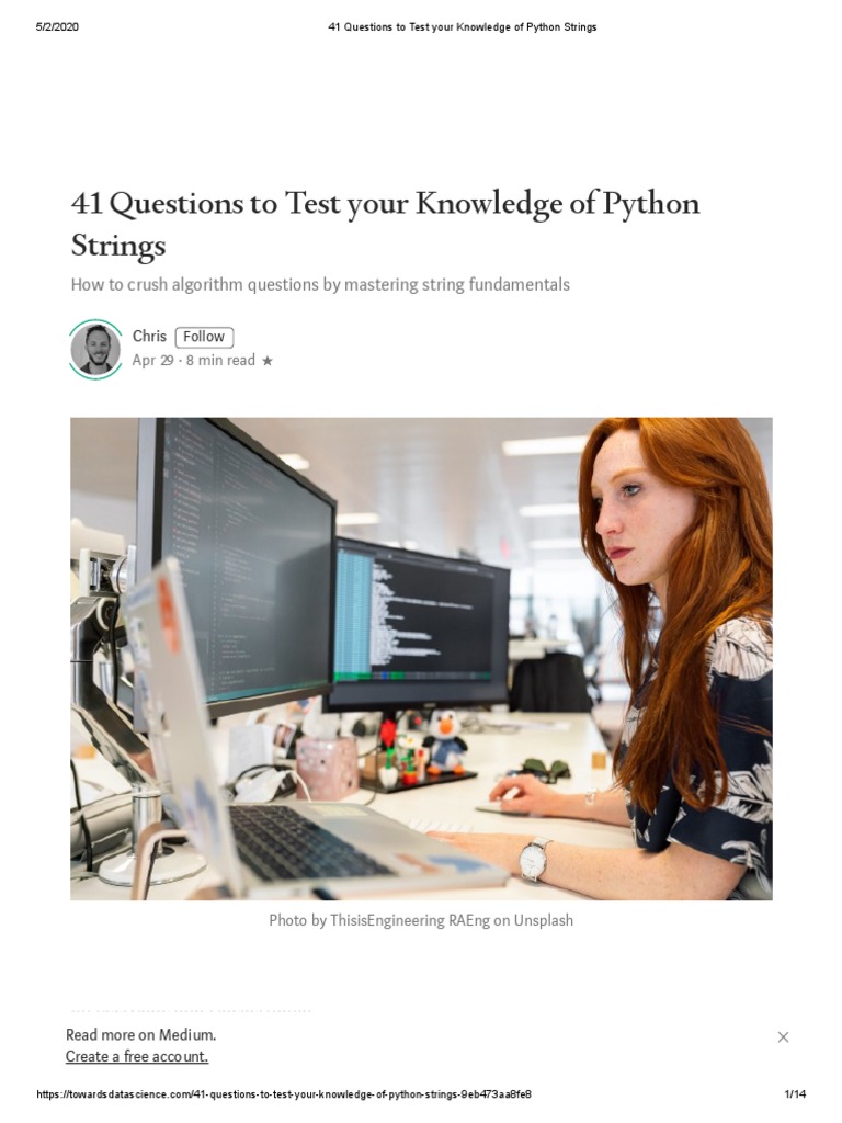 https://towardsdatascience.com/41-questions-to-test-your-knowledge-of-python-strings-9eb473aa8fe8 1/14