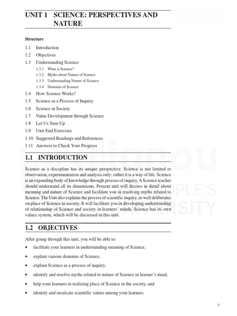 Science. The Unit also explains the process of scientific inquiry, as well deliberates