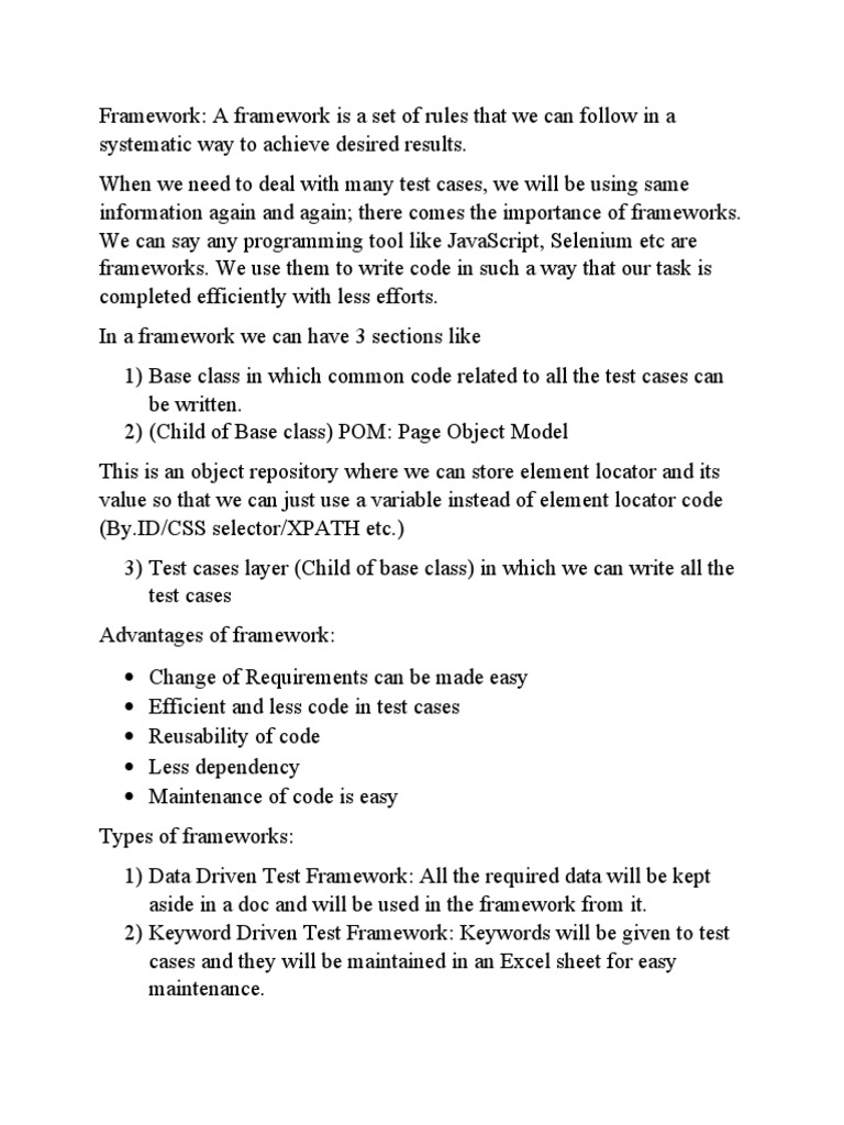 Framework: A framework is a set of rules that we can follow in a
