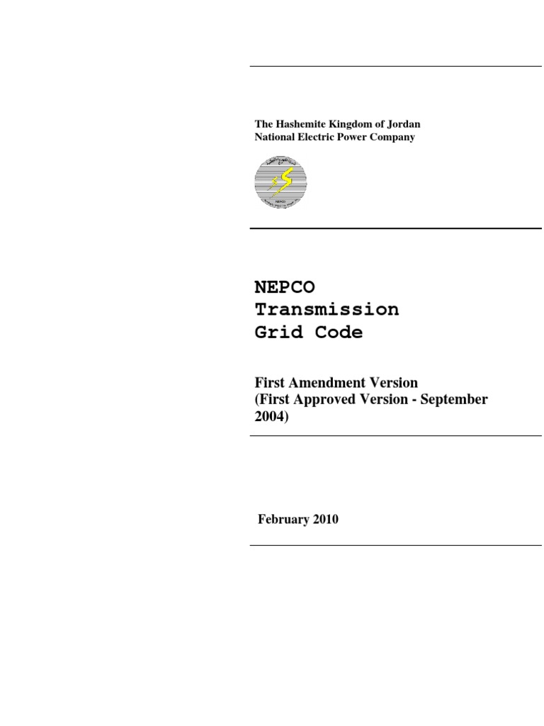This preface to the NEPCO Transmission Grid Code (Transmission Code) is provided for