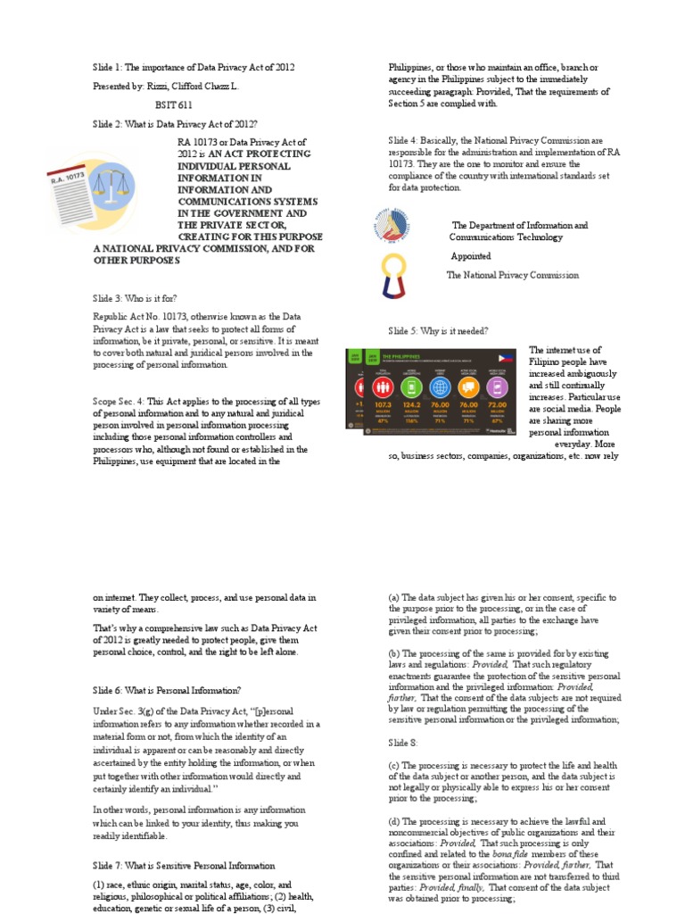 Slide 1: The importance of Data Privacy Act of 2012 Philippines, or those who maintain an office, branch or