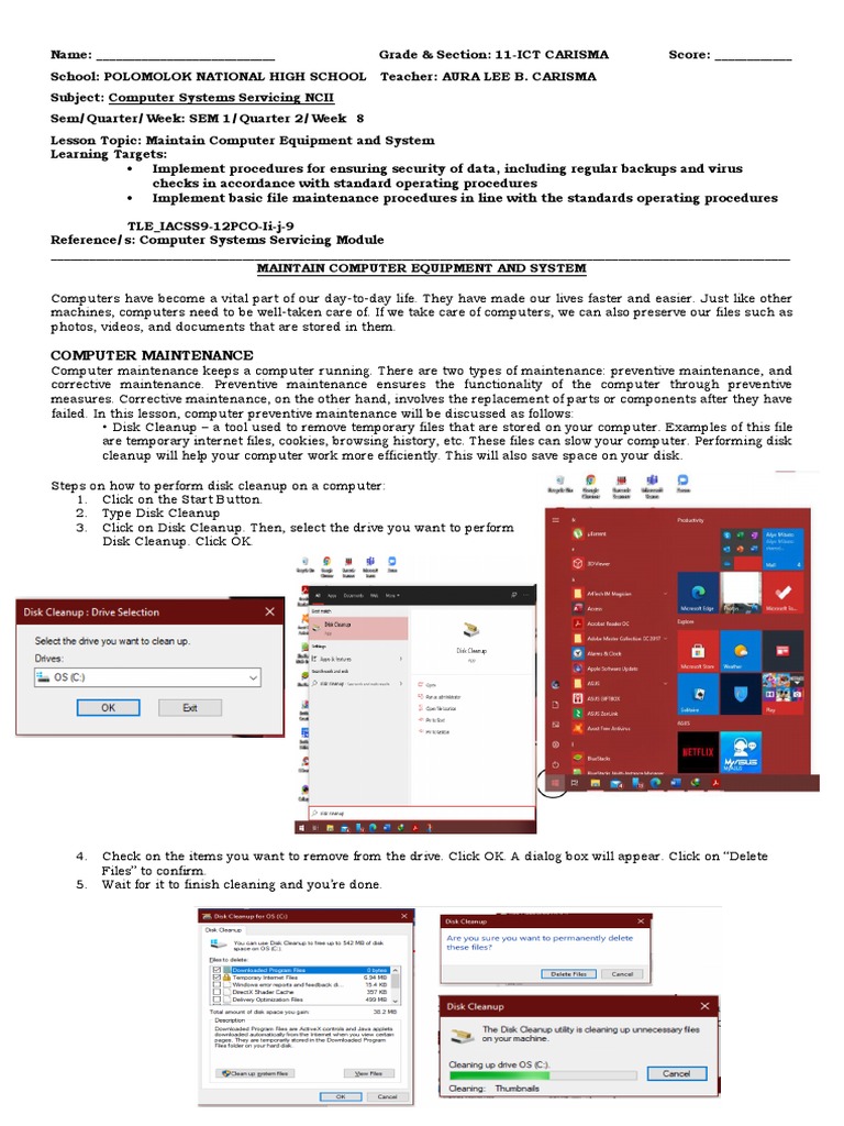 Lesson Topic: Maintain Computer Equipment and System