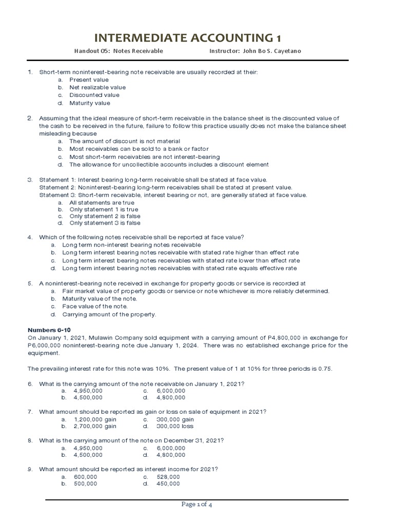 Handout 05: Notes Receivable Instructor: John Bo S. Cayetano