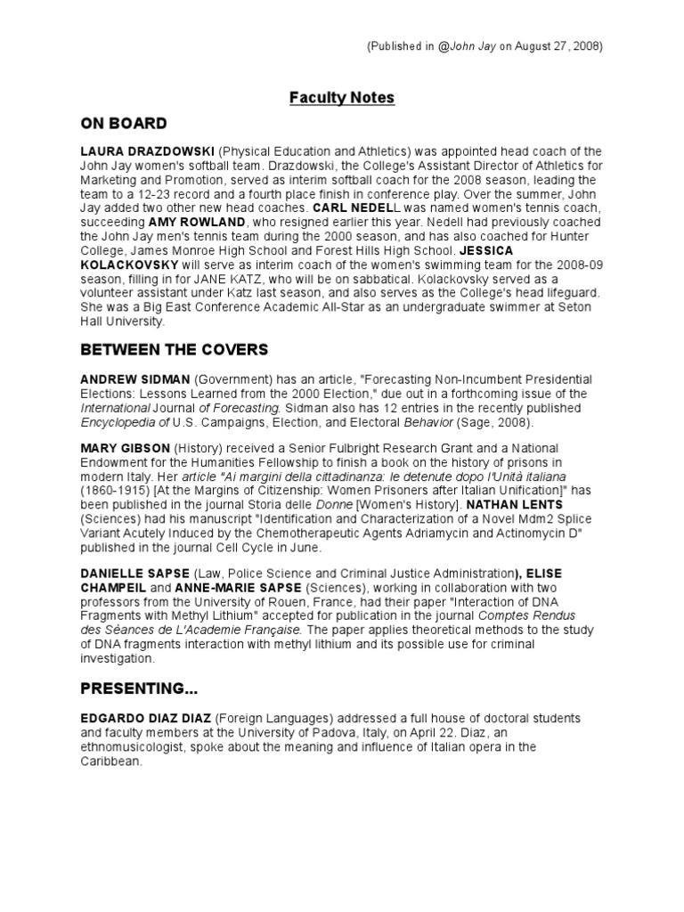 Faculty Notes