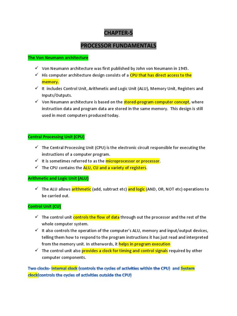 It includes Control Unit, Arithmetic and Logic Unit (ALU), Memory Unit, Registers and