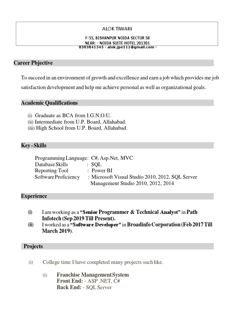 Software Proficiency : Microsoft Visual Studio 2010, 2012, SQL Server