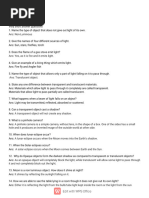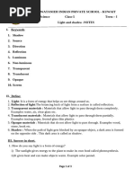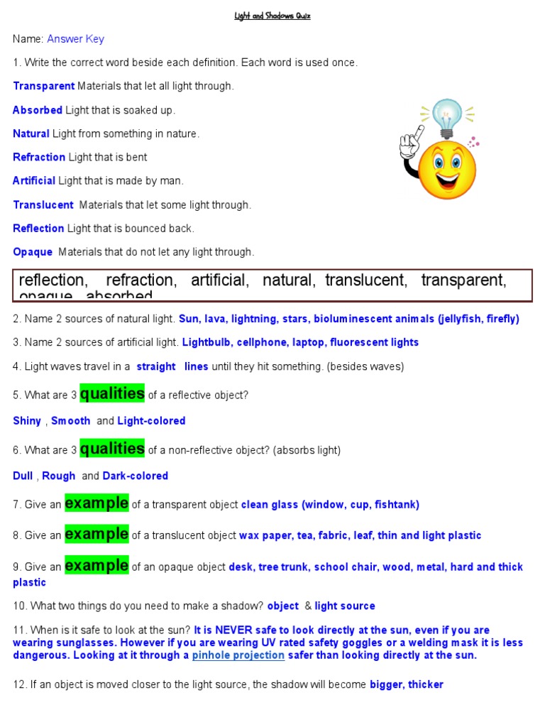 Light and Shadows Quiz