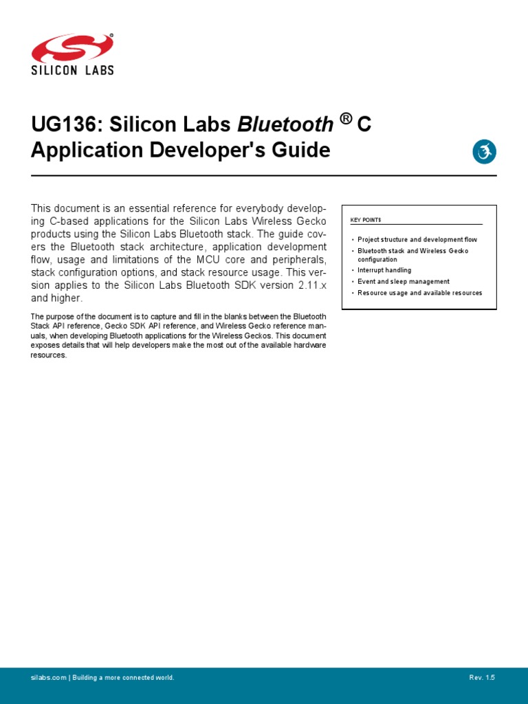 This document is a C developer’s guide for the Silicon Labs Bluetooth stack.