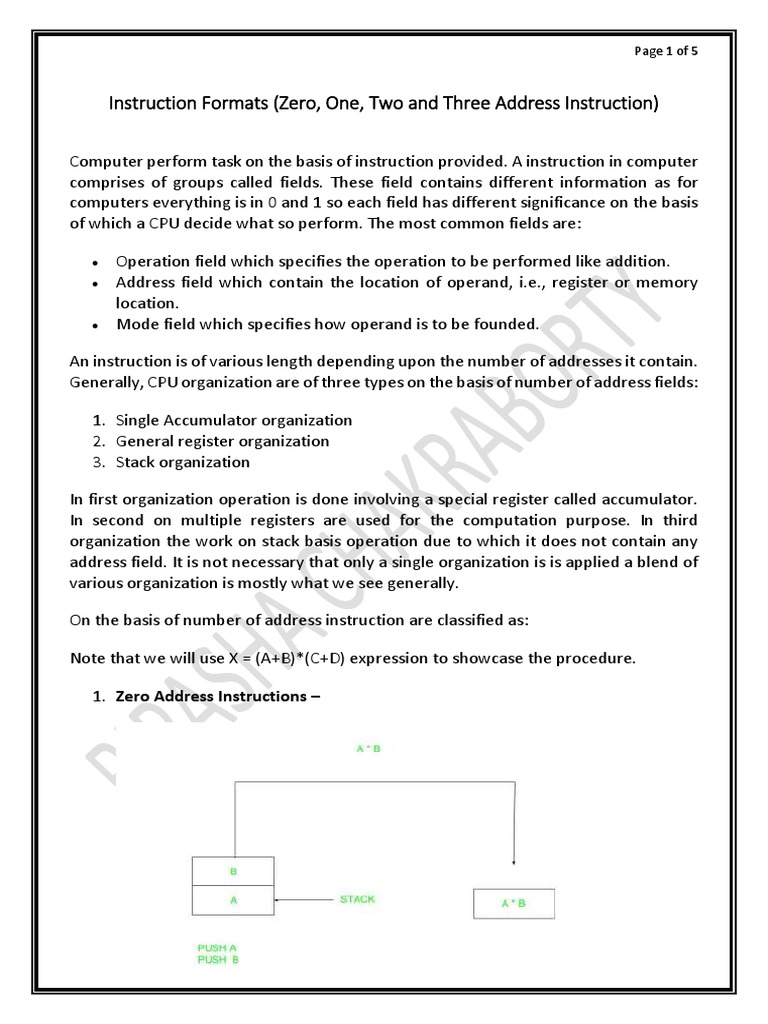 Instruction Formats (Zero, One, Two and Three Address Instruction)