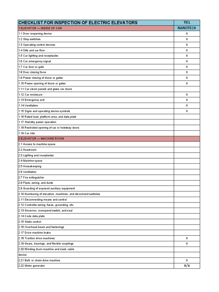 CHECKLIST FOR INSPECTION OF ELECTRIC ELEVATORS TICL