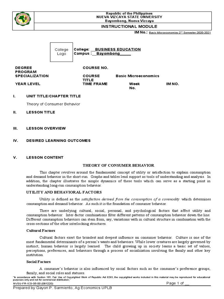IM No.: Basic Microeconomics-2nd Semester-2020-2021