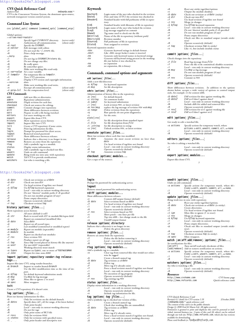 -r revs Only list revisions revs -f Force a head revision match if tag/date not found. through our web site: http://www.refcards.com, which also has versions