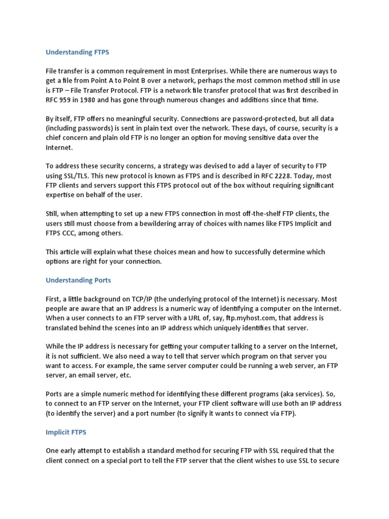 transferred data or explicit FTPS that allows you to start both encrypted and unencrypted