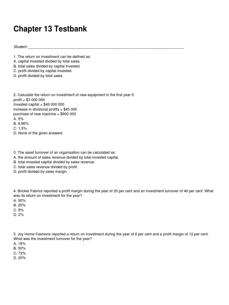 Learning Objective: 13.02 Describe some advantages and limitations of ROI as a measure of performance of investment 4
