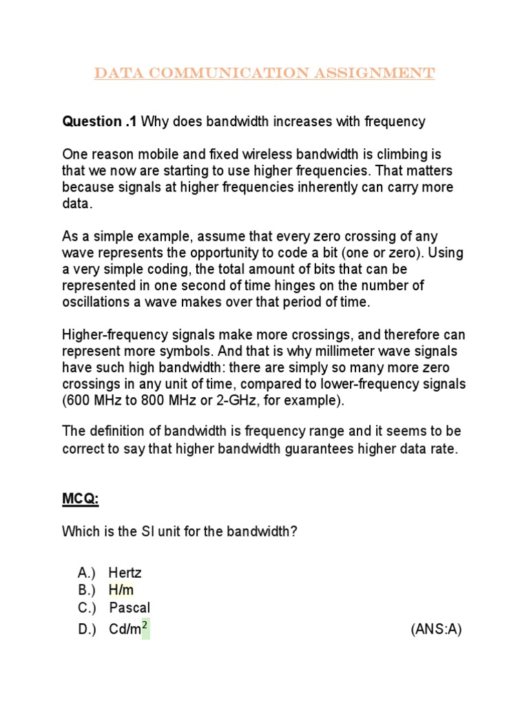 Ans:- Baseband Transmission :- Baseband Transmission is a signaling technology