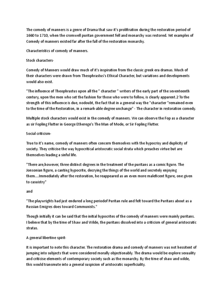 Shaw and wilde are the post restoration dramatists of comedy of manners, but in them we can still see