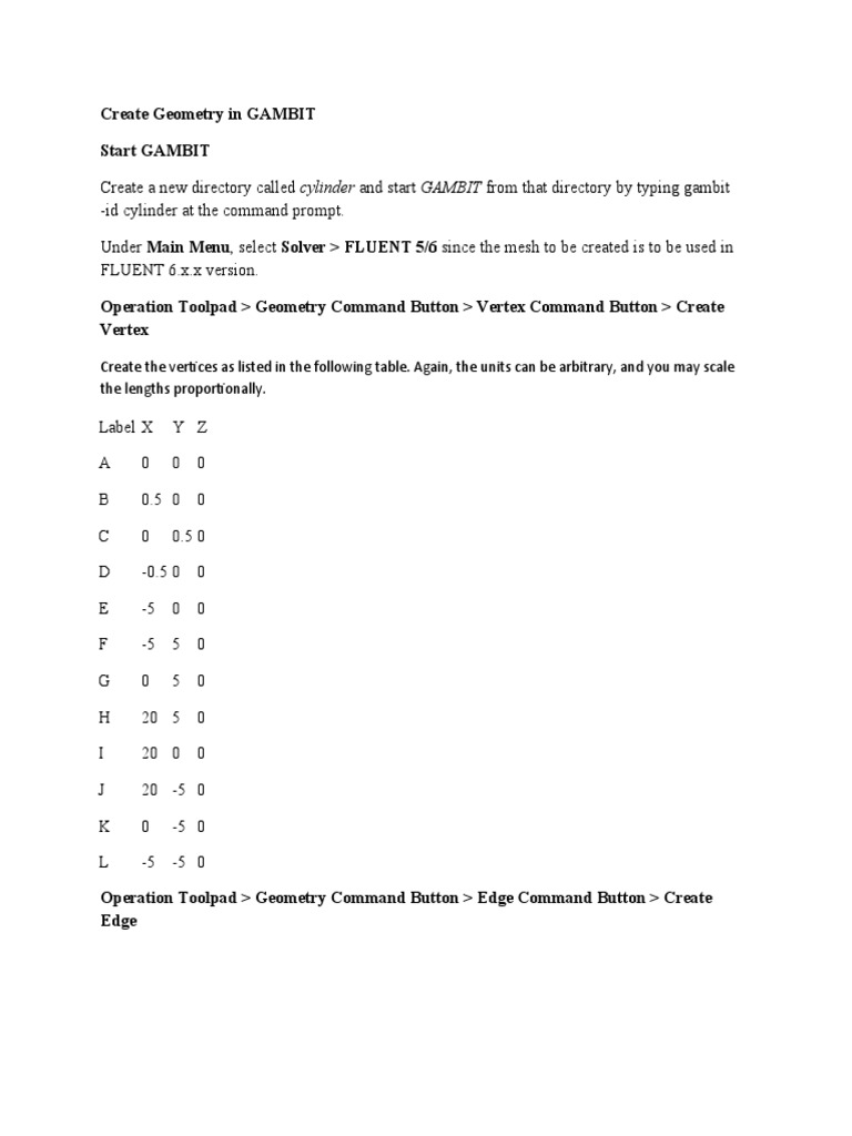 Create the vertices as listed in the following table. Again, the units can be arbitrary, and you may scale
