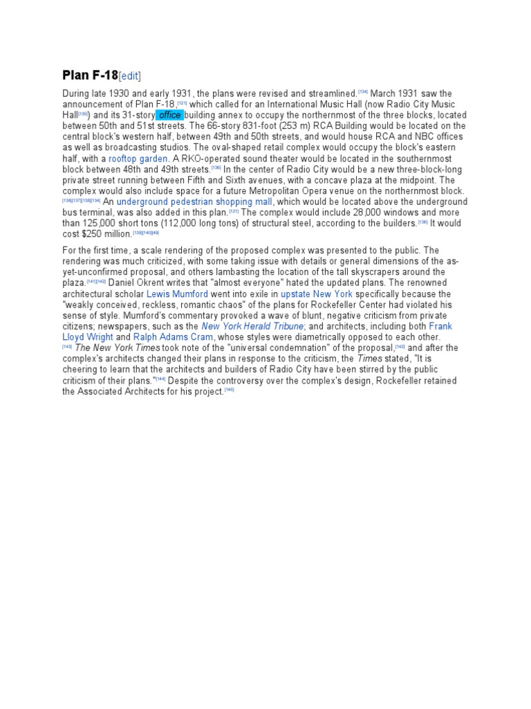 criticism of their plans."[144] Despite the controversy over the complex's design, Rockefeller retained