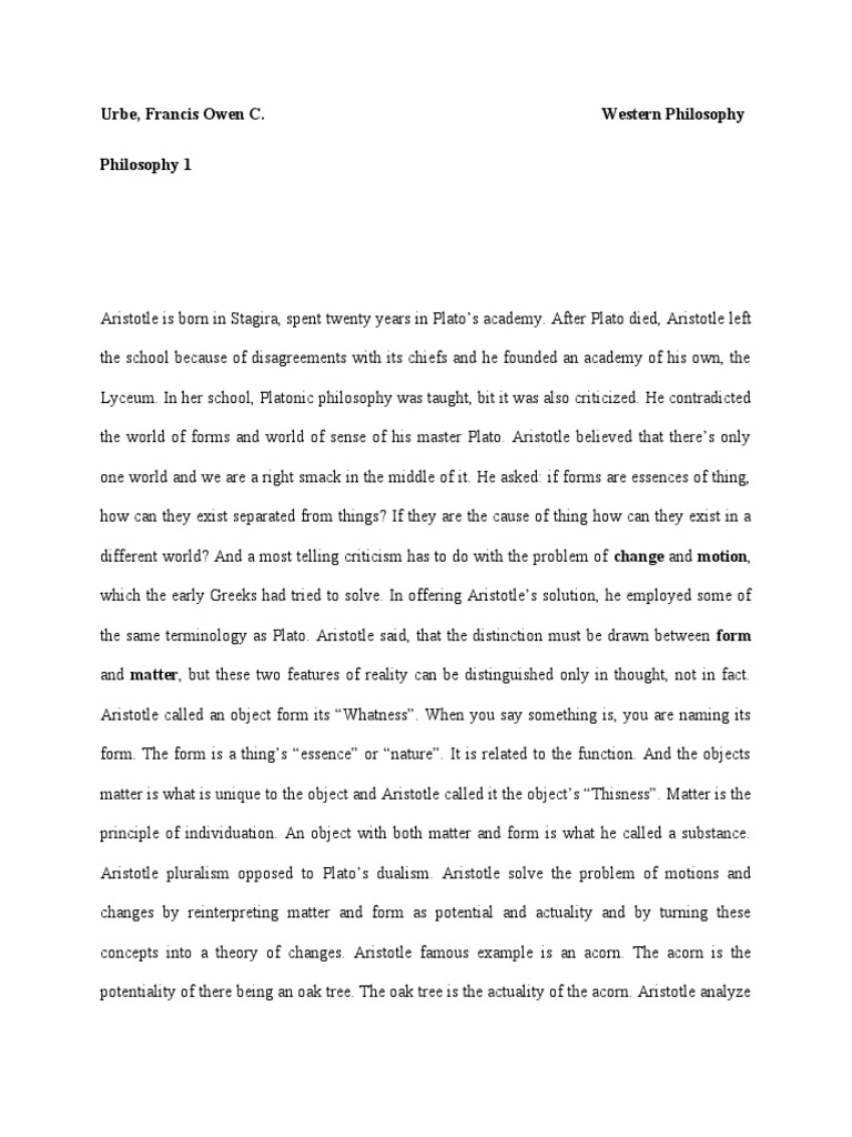 Aristotle pluralism opposed to Plato’s dualism. Aristotle solve the problem of motions and