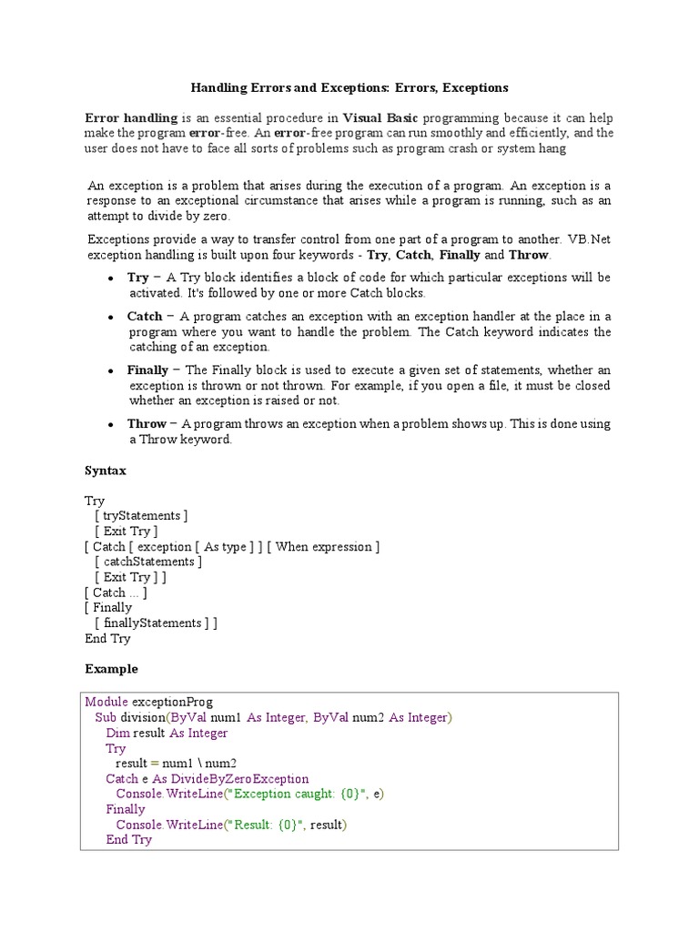Error handling is an essential procedure in Visual Basic programming because it can help