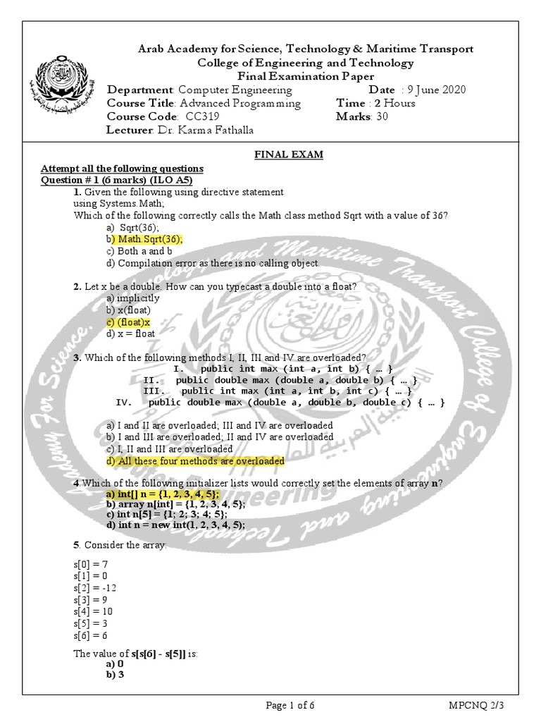 Question # 5 (4 marks) (ILO A1 and ABET Outcome 2)