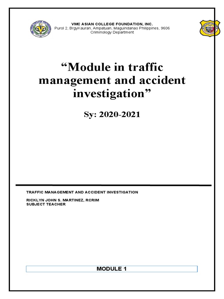 M. Sample of Traffic Accident Investigation Report Form. Attached on the next pages is an