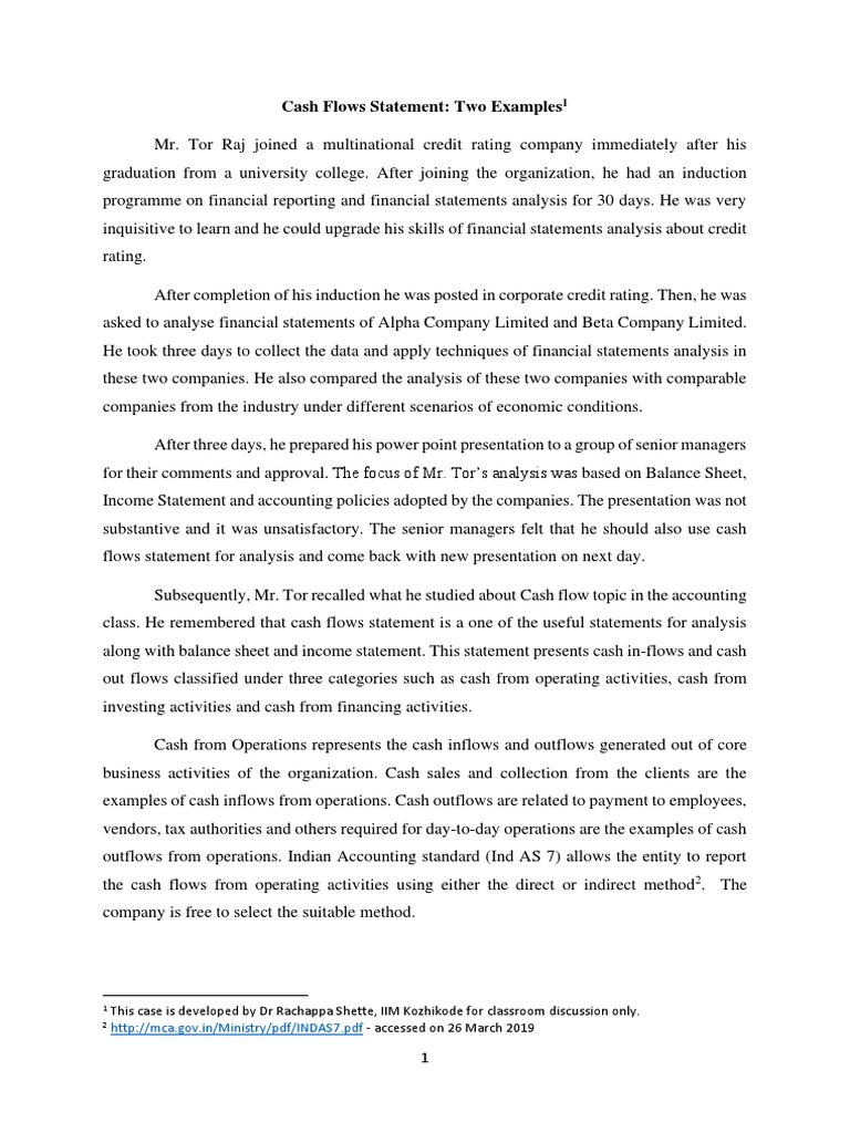 Analysis of cash flows statement is a big challenge to Mr. Tor because much of his
