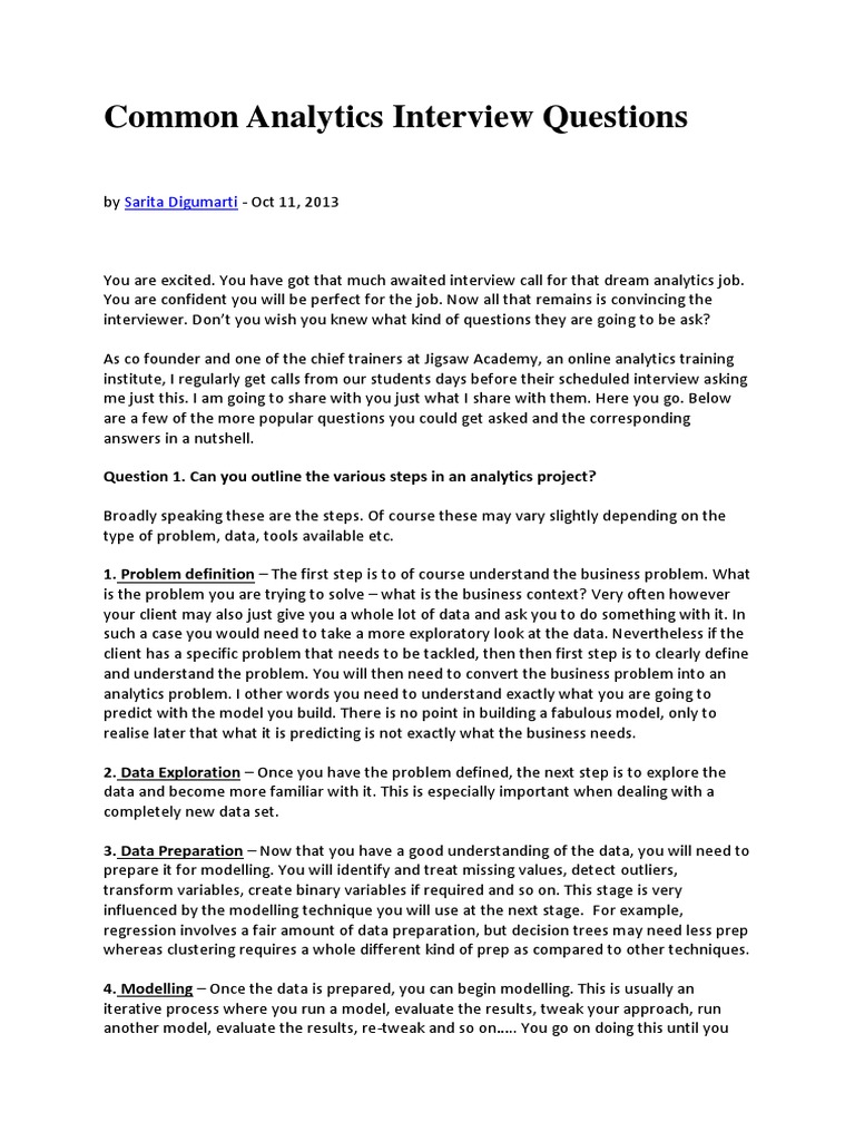 Common Analytics Interview Questions