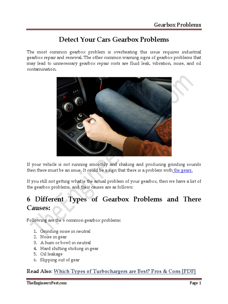 If you still not getting what is the actual problem of your gearbox, then we have a list of