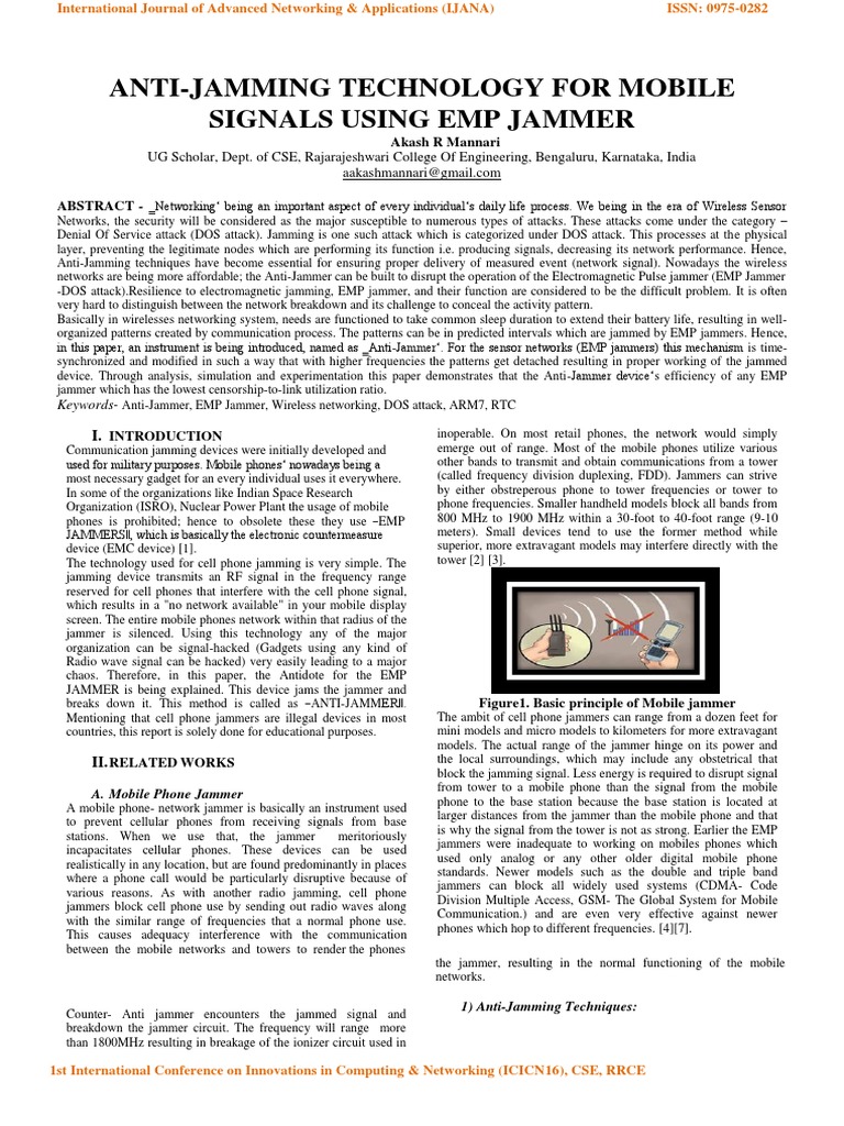 networks are being more affordable; the Anti-Jammer can be built to disrupt the operation of the Electromagnetic Pulse jammer (EMP Jammer