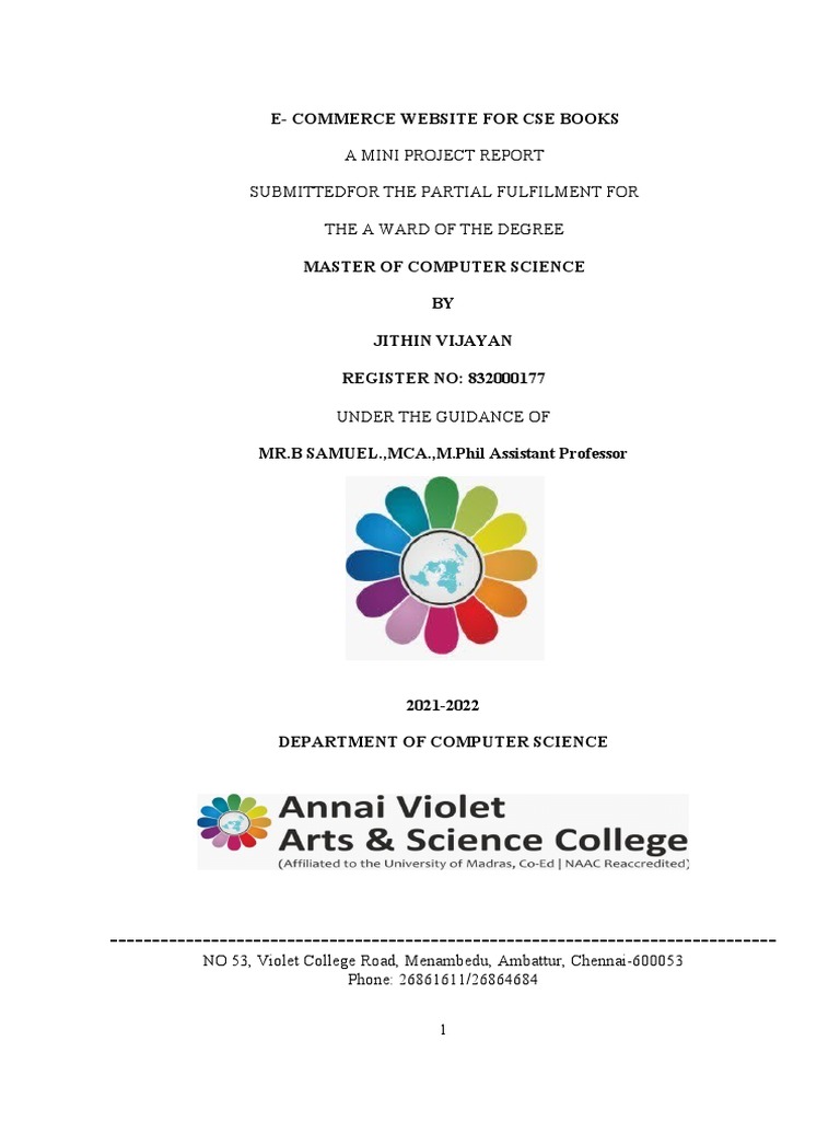 Submitted for the Viva-Voice Examination Held on At Annai Violet Arts and Science College,