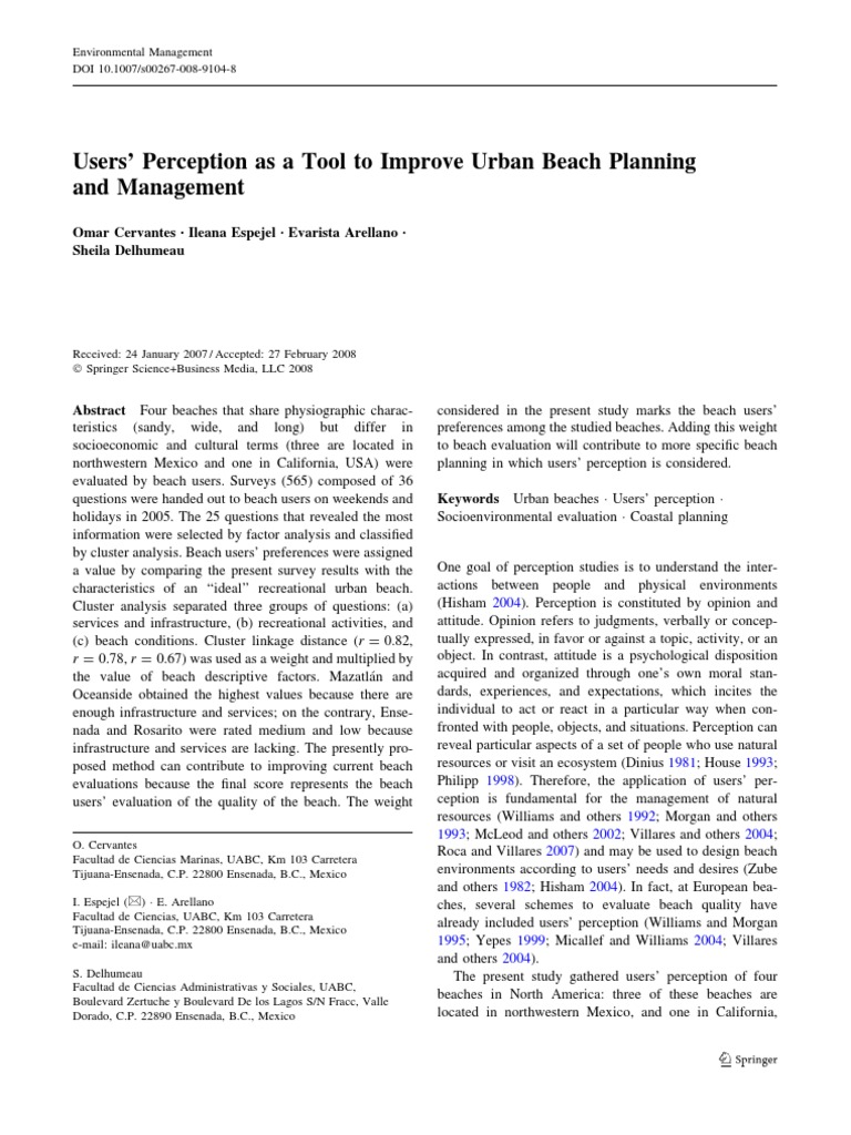 I. Espejel (&) E. Arellano ches, several schemes to evaluate beach quality have