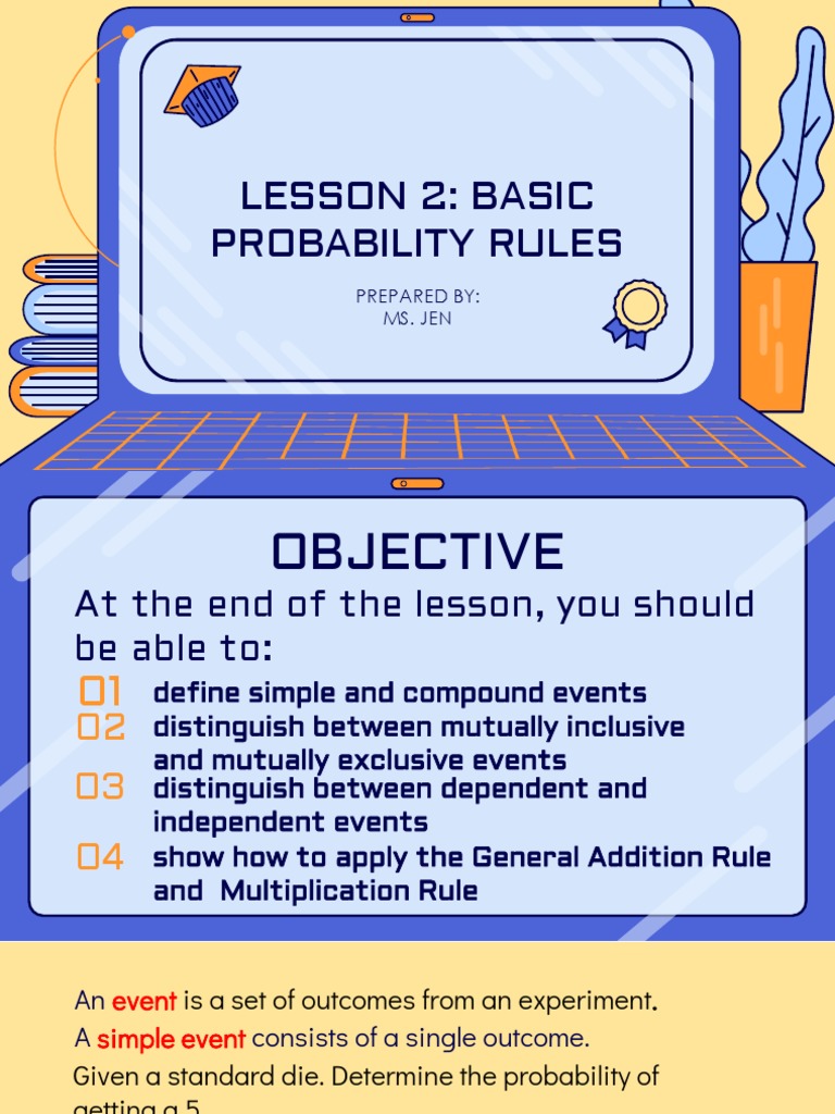 3. Two dice are rolled. Find the probability that a number 1 is rolled on the