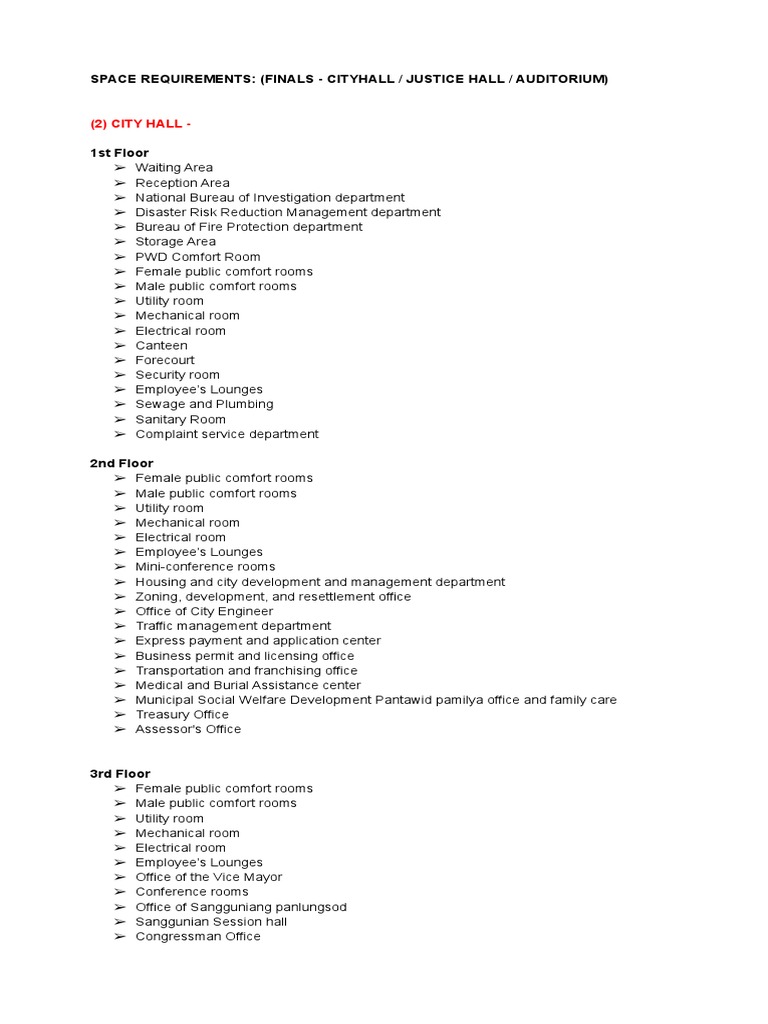 SPACE REQUIREMENTS: (FINALS - CITYHALL / JUSTICE HALL / AUDITORIUM)