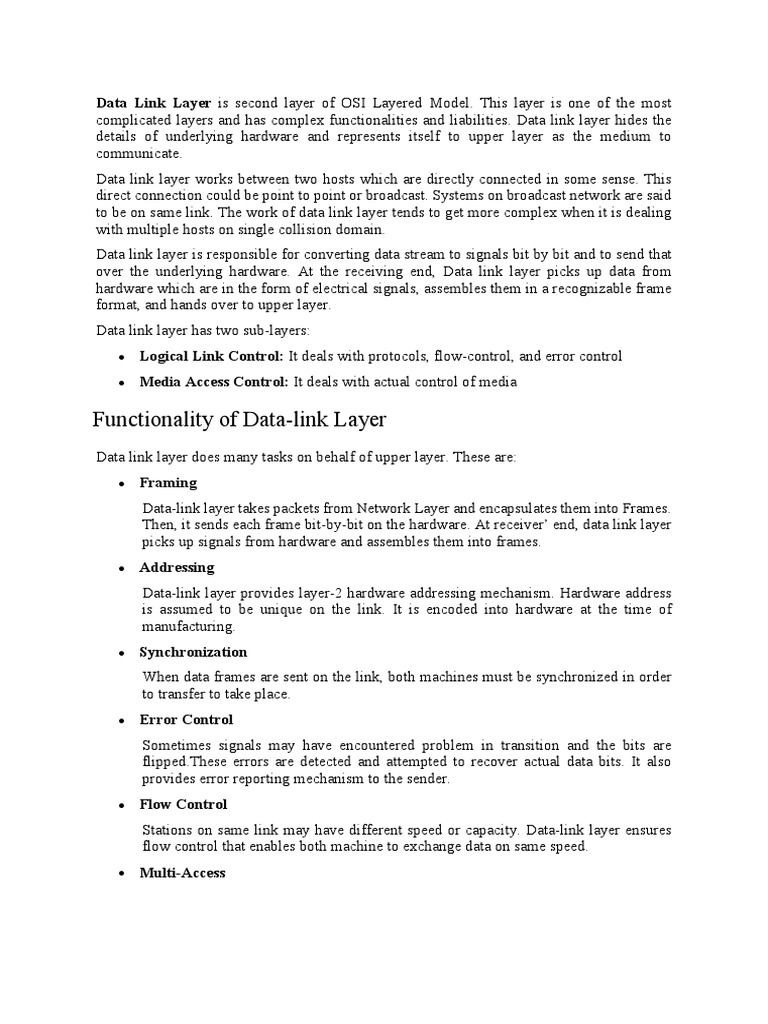 complicated layers and has complex functionalities and liabilities. Data link layer hides the